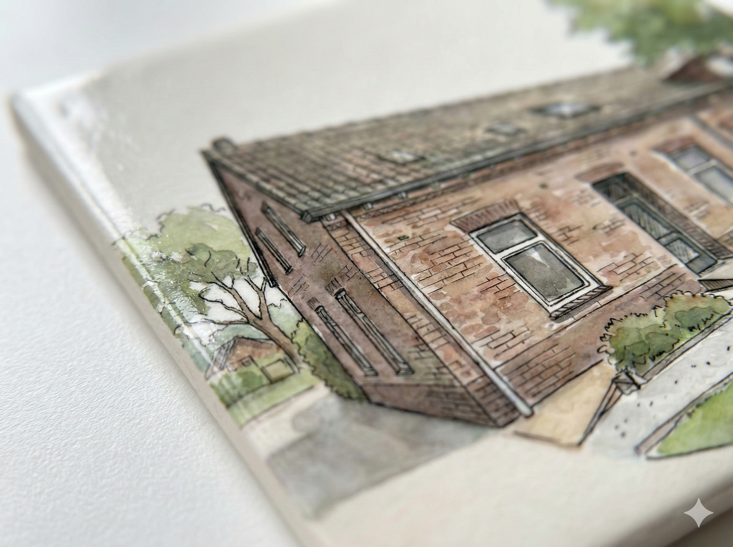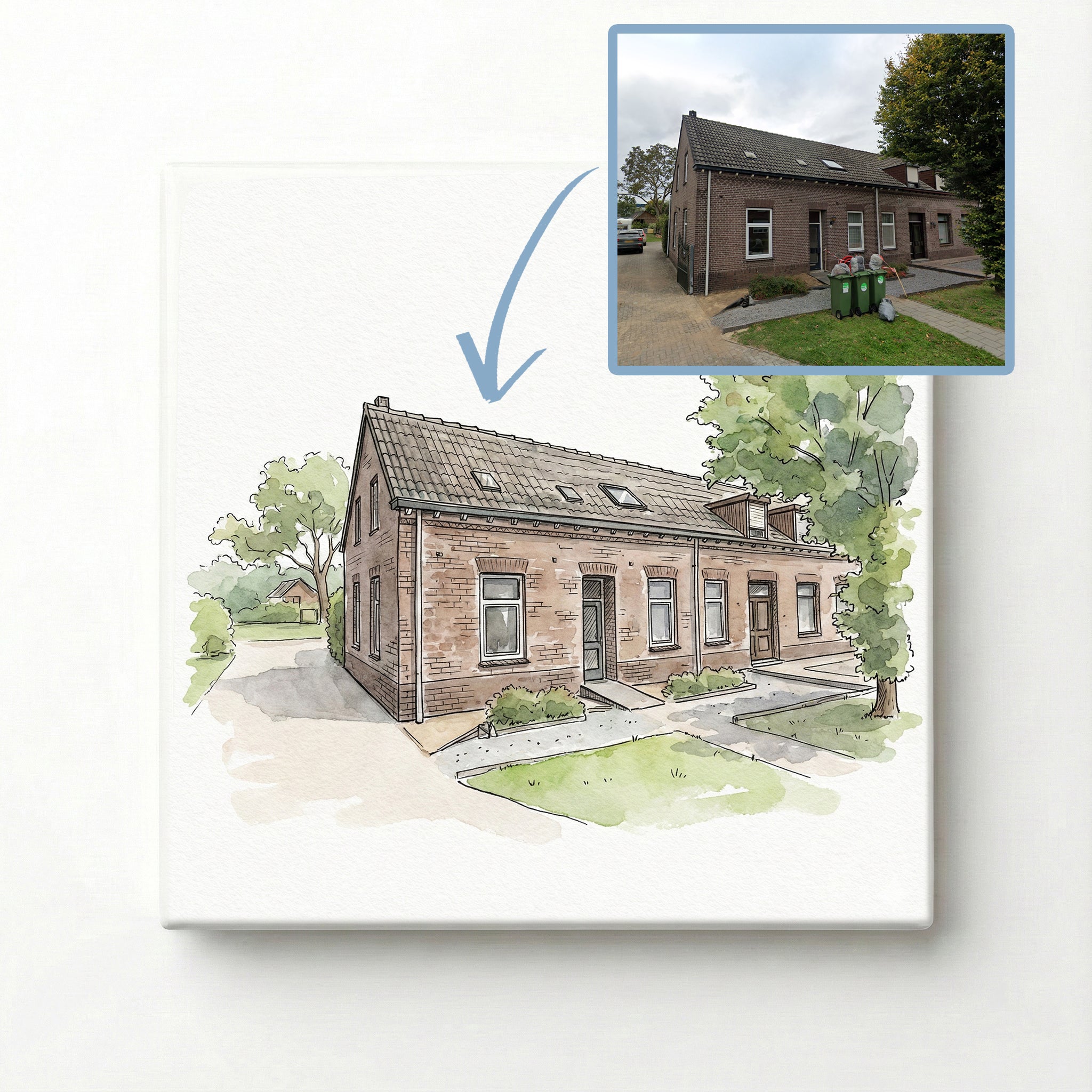 Jouw foto wordt omgezet naar een unieke schets in aquarelstijl.